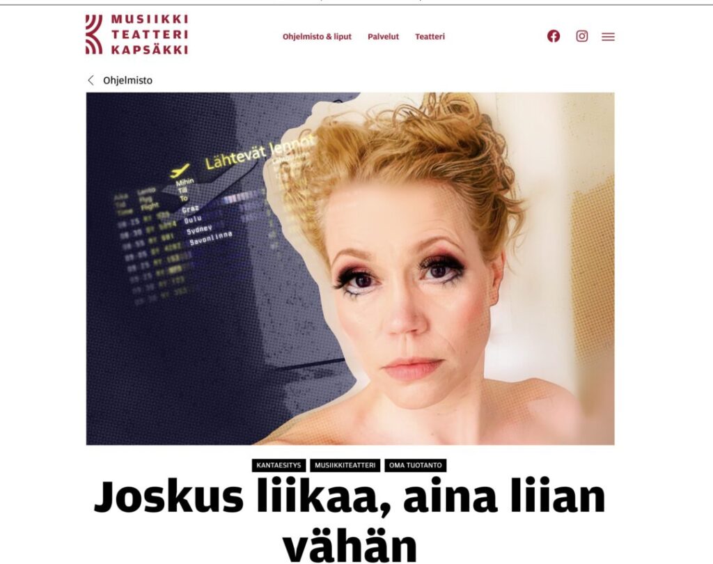 Pääkaupungin Wanhat Toverit on varannut 20 lippua Musiikkiteatteri Kapsäkin esitykseen ”Joskus liikaa, aina liian vähän” lauantaina 4.10.2025 klo 14. Musiikkinäytelmä pohjautuu oopperalaulaja Helena Juntusen omaelämänkertaan ja kuvaa taiteilijan elämän todellisuutta. Esityksen käsikirjoituksesta vastaa Antti Rönkä ja ohjauksesta Kari-Pekka Toivonen. Musiikin siihen on säveltänyt Iiro Rantala. Lavalla nähdään Helena Juntusen ja Kari-Pekka Toivosen lisäksi trio, jossa […]